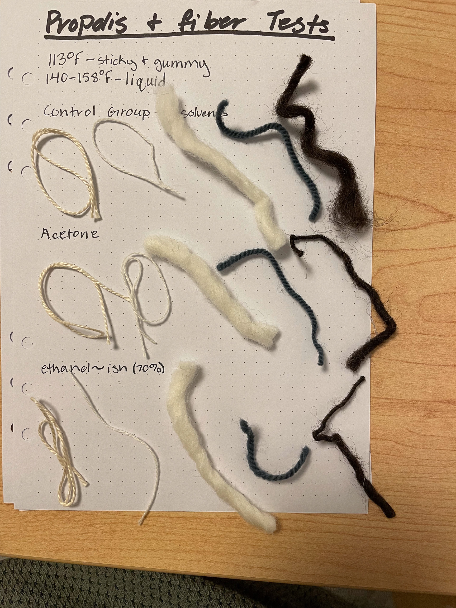 In my junior year of my Integrated Design program I studied the potential benefits of propolis through the fabrication of a fabric plant pot. Propolis is a byproduct that honeybees create as glue for their hives. When honey is harvested by beekeepers, they often will harvest some of the propolis as well. Propolis has been found to have varying anti-bacterial and anti-oxidant effects on human health. I was introduced to propolis through another course I took junior year called Honeybee Colonies where we studied the entymolygy of honeybees and culture and history of beekeeping.