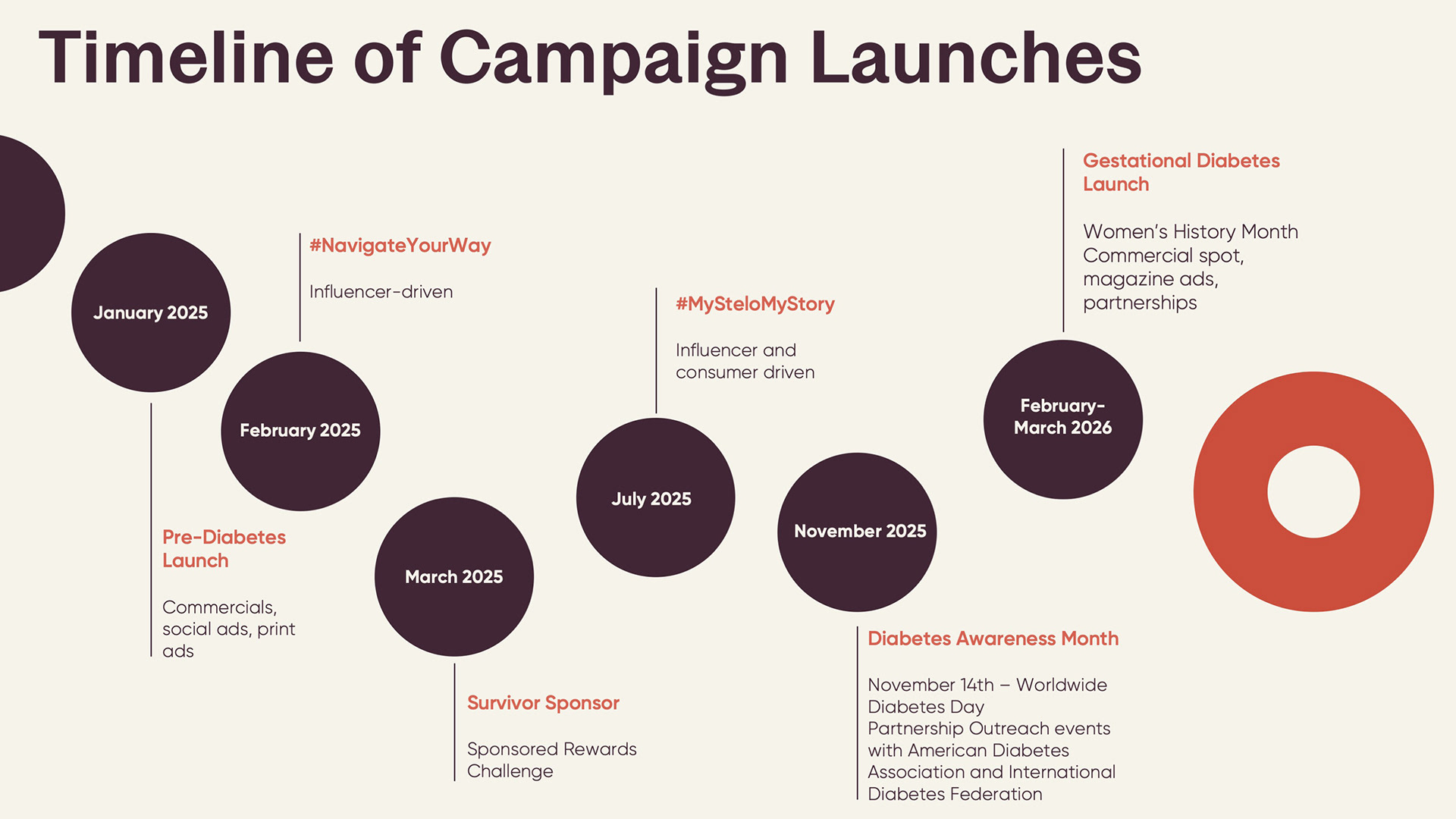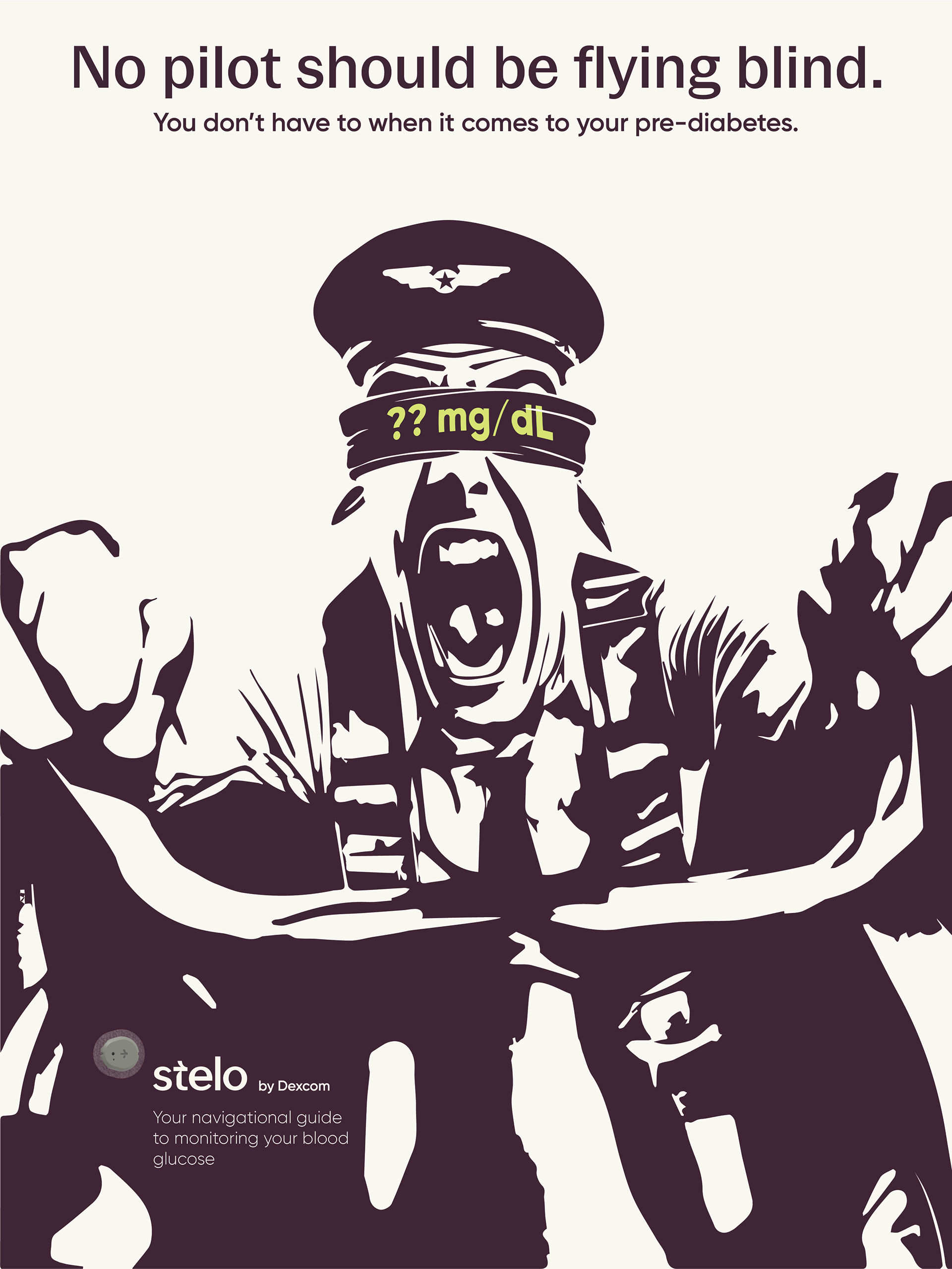 Our concept, No Pilot Should Fly Blind, revolved around that critical time when you are diagnosed with pre-diabetes, that you may be able to successfully still prevent diabetes. However, navigating your blood sugar alone can be extremely difficult and isolating. Stelo, the first over the counter continuous glucose monitor, can act as your guide through navigating pre-diabetes. Other than ideating this campaign concept, I also generated all visual mockups of social media ads and commercial spots as well as created the presentation deck in adherence with branding.